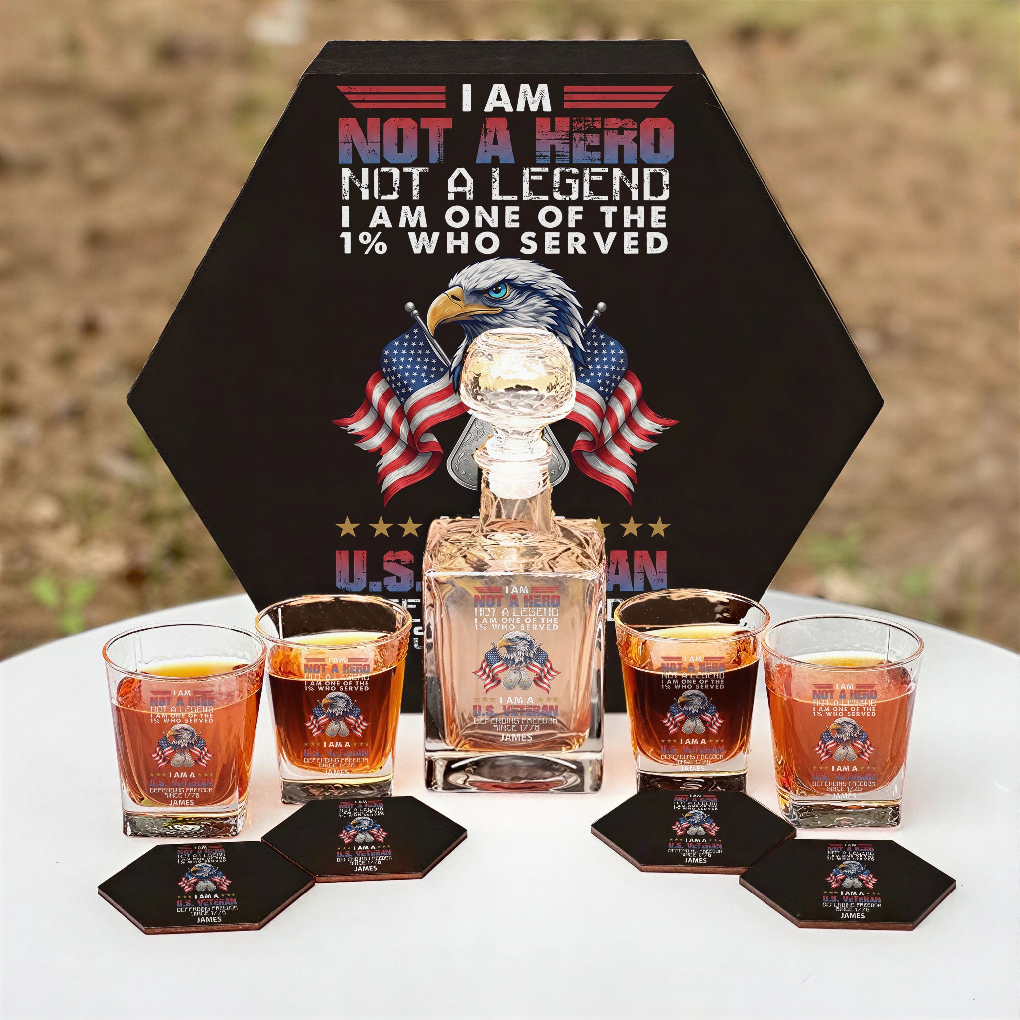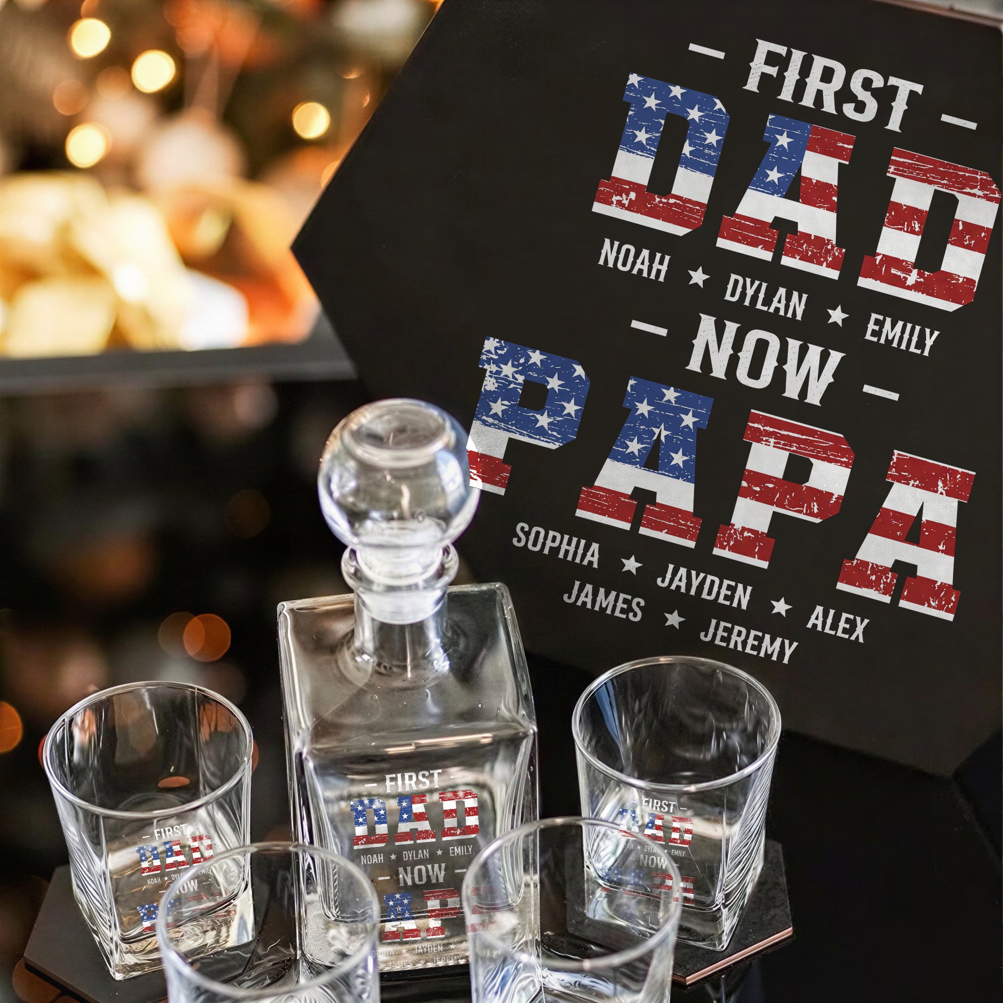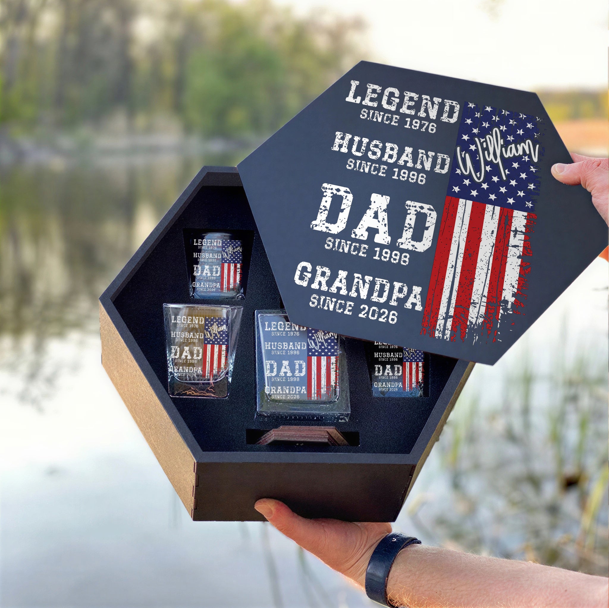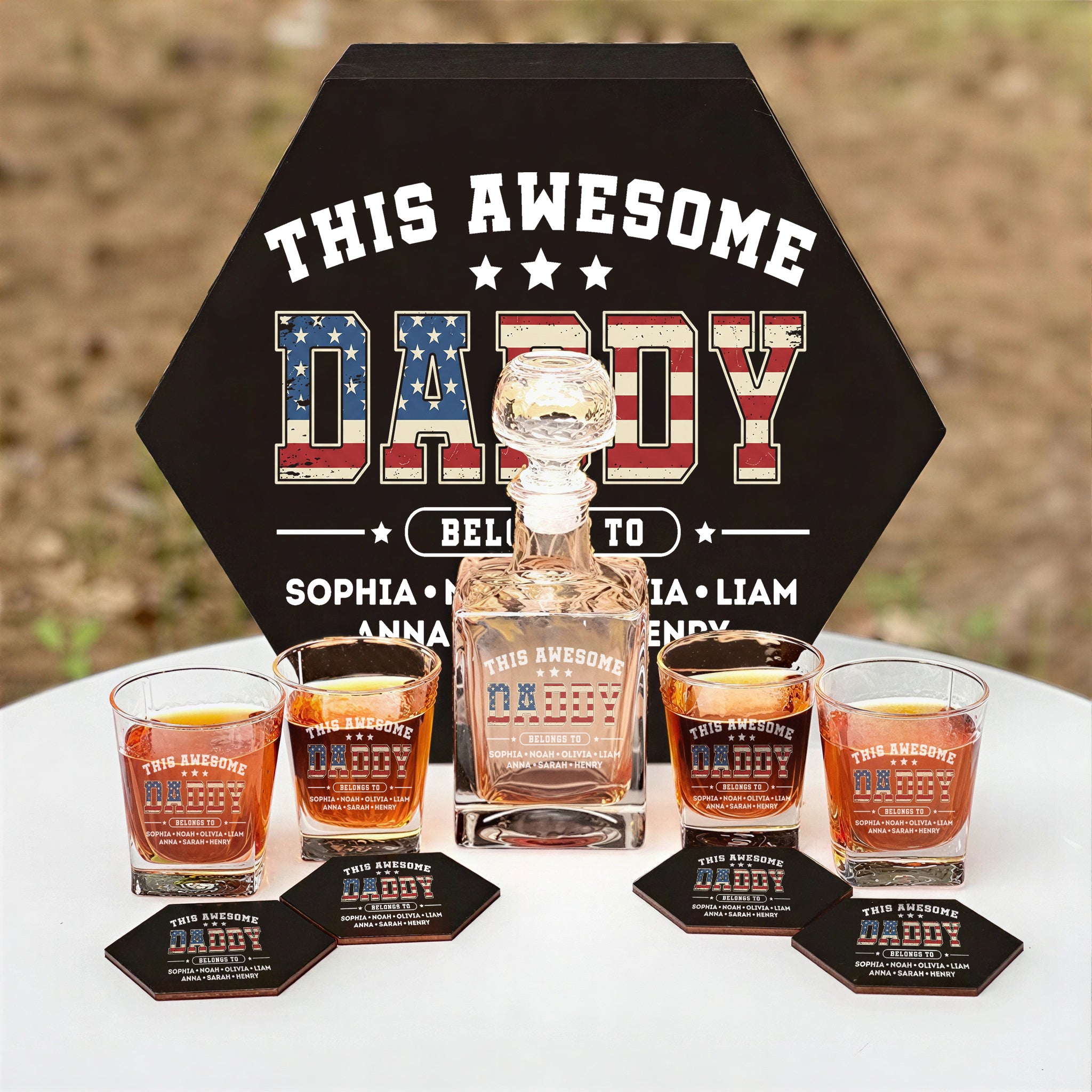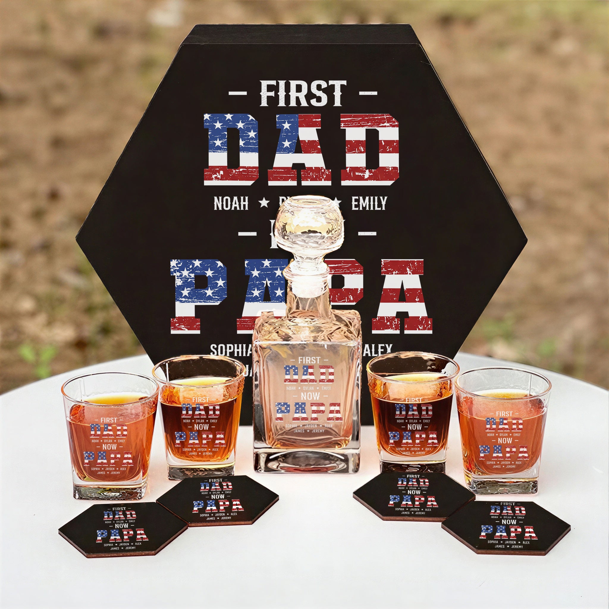 CUSTOM NAME - WHISKEY SET (Wooden box + Decanter + 4 Glasses + 4 Coasters), BOURBON WHISKEY, FATHER'S DAY GIFT, FOR WHISKEY LOVERS