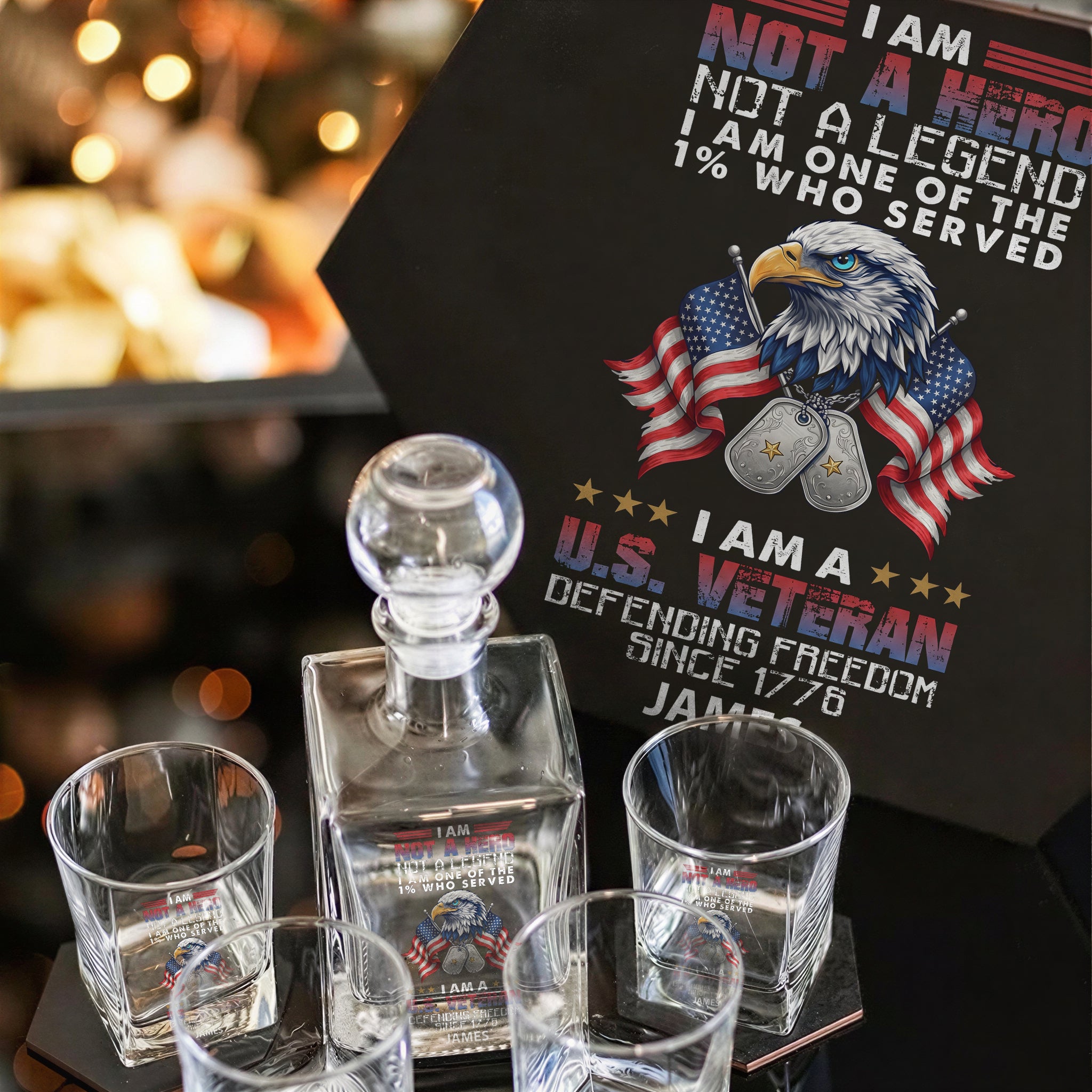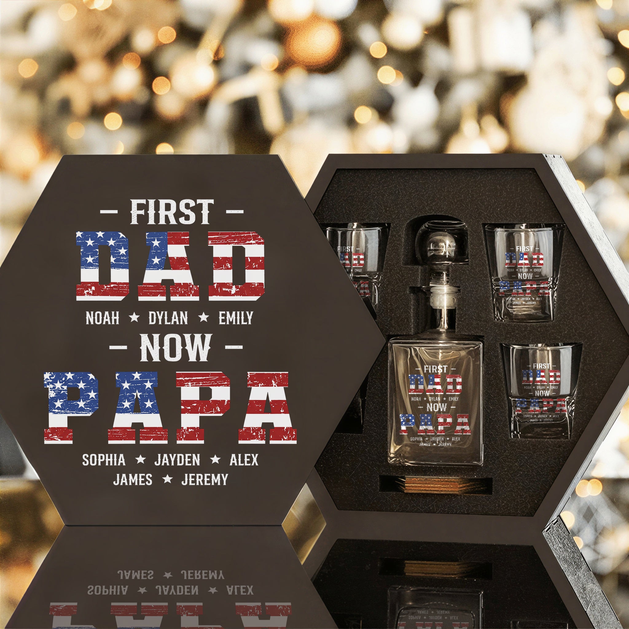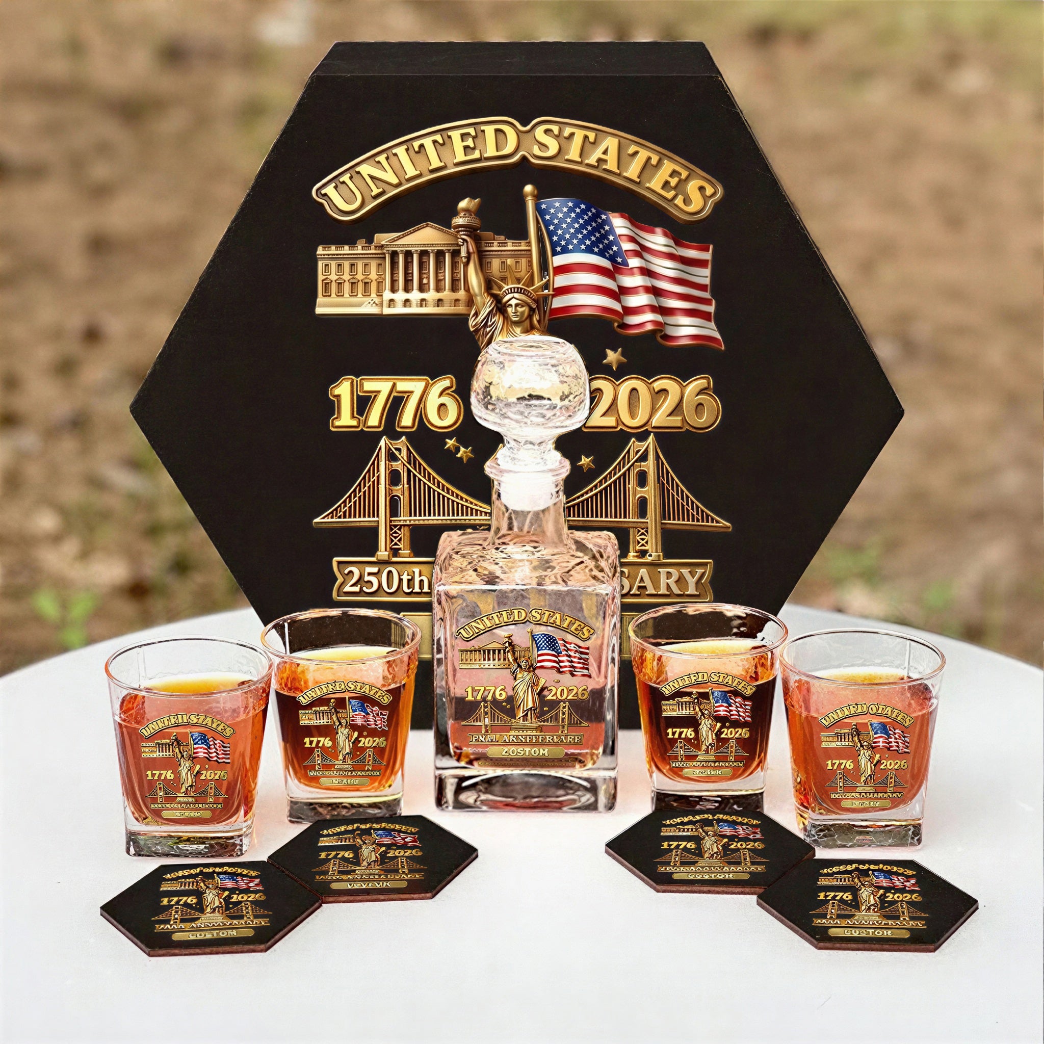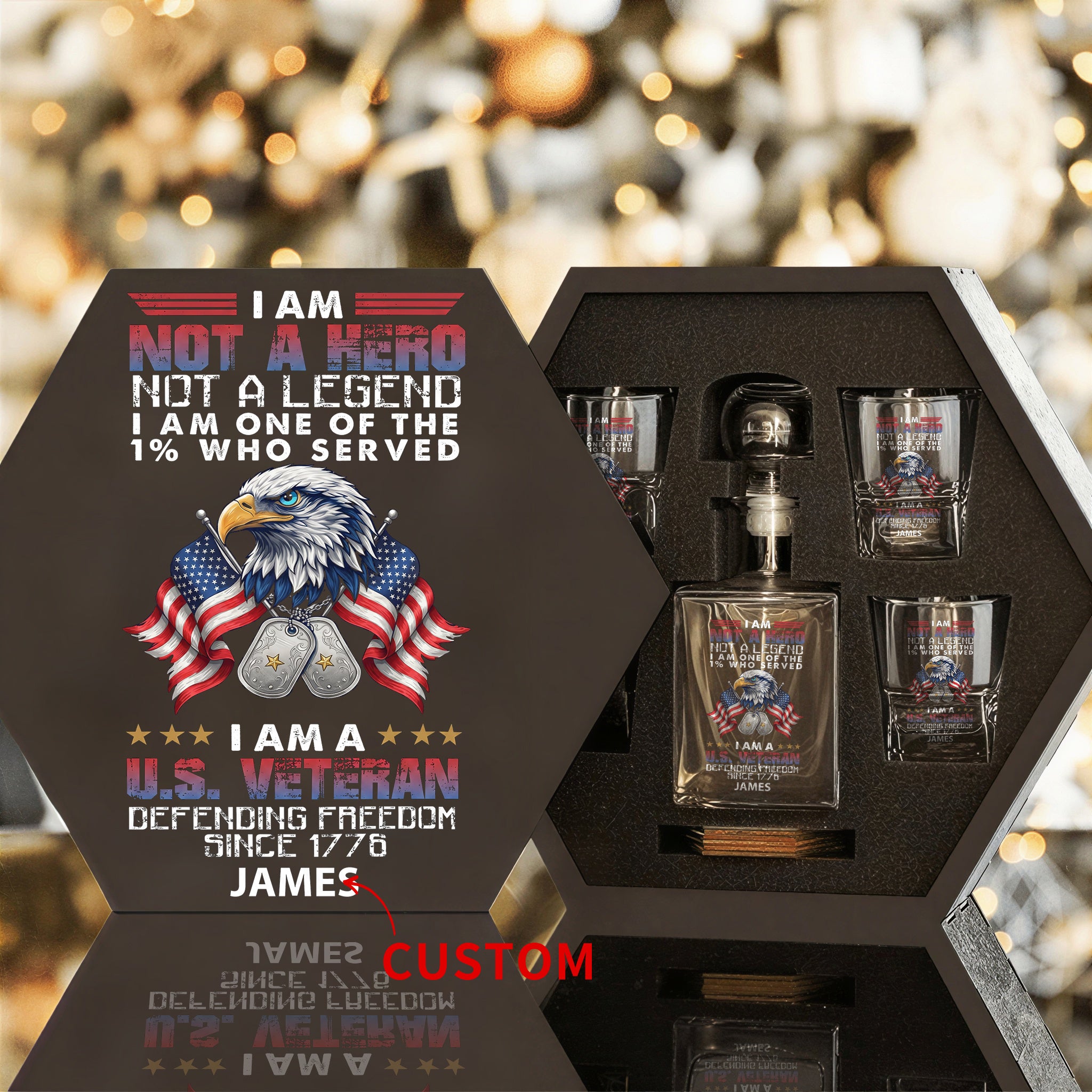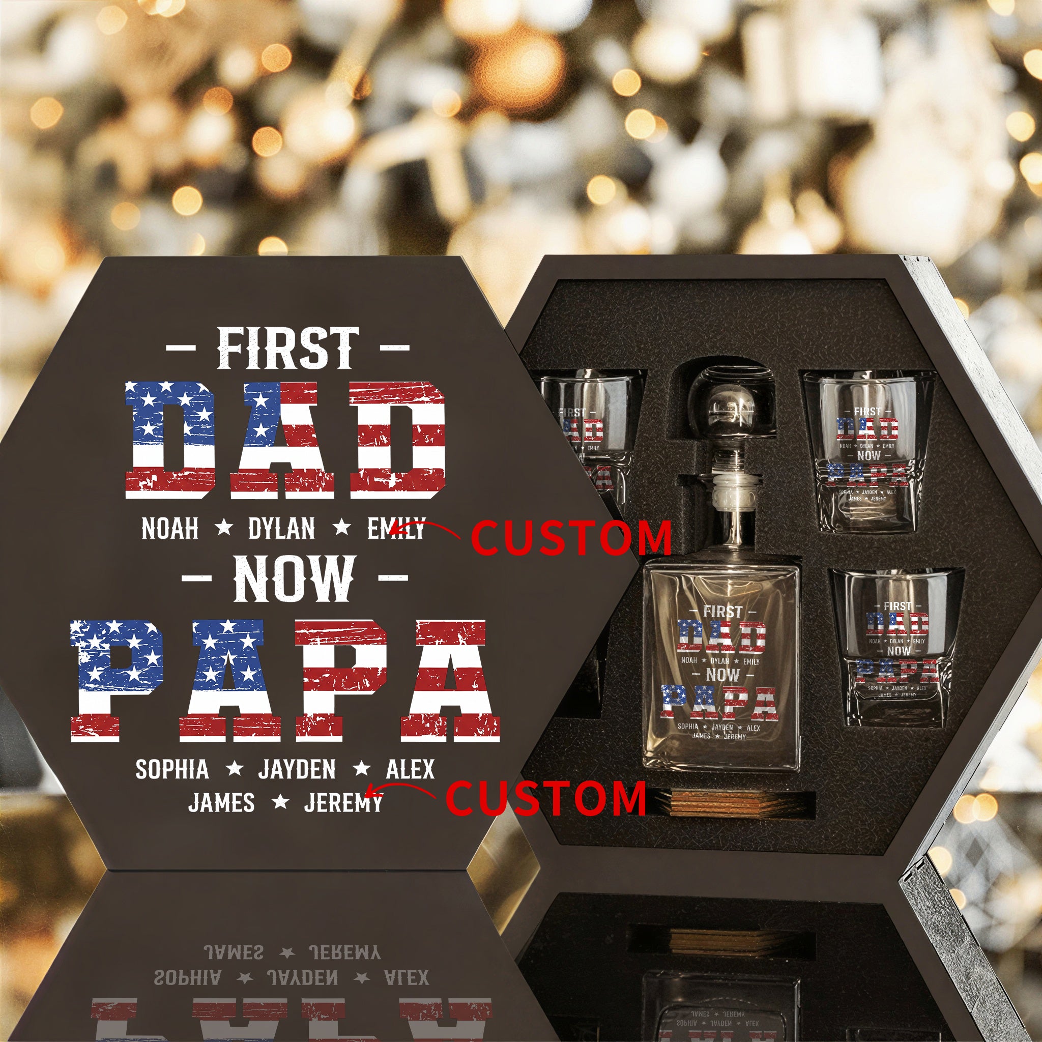 CUSTOM NAME - WHISKEY SET (Wooden box + Decanter + 4 Glasses + 4 Coasters), BOURBON WHISKEY, FATHER'S DAY GIFT, FOR WHISKEY LOVERS