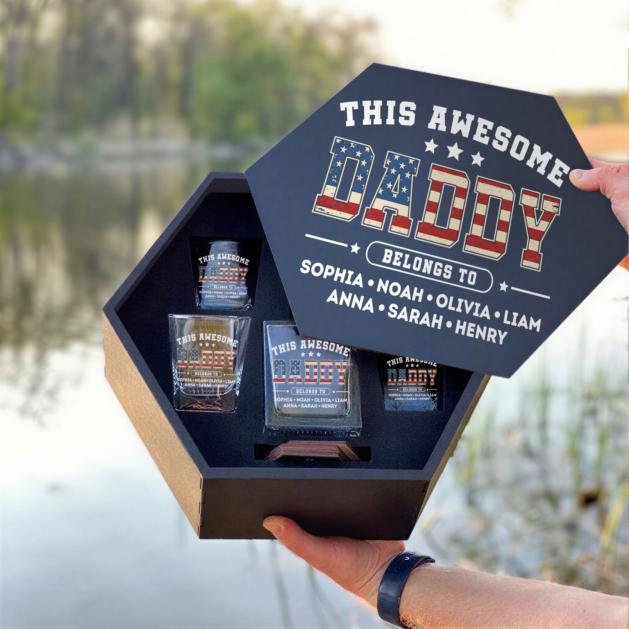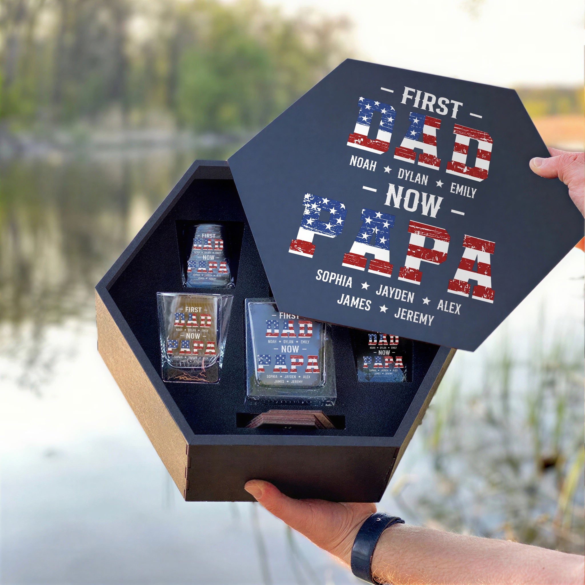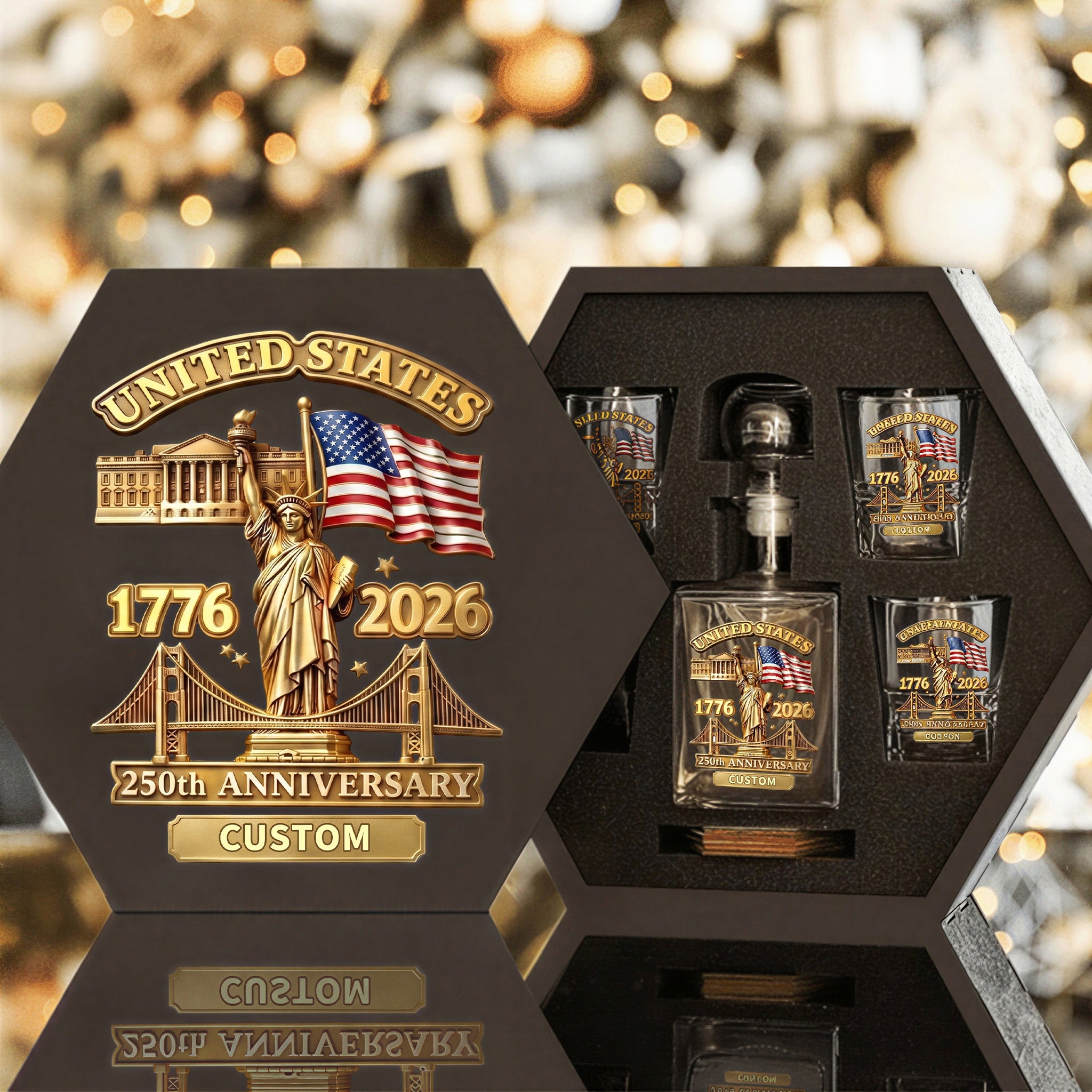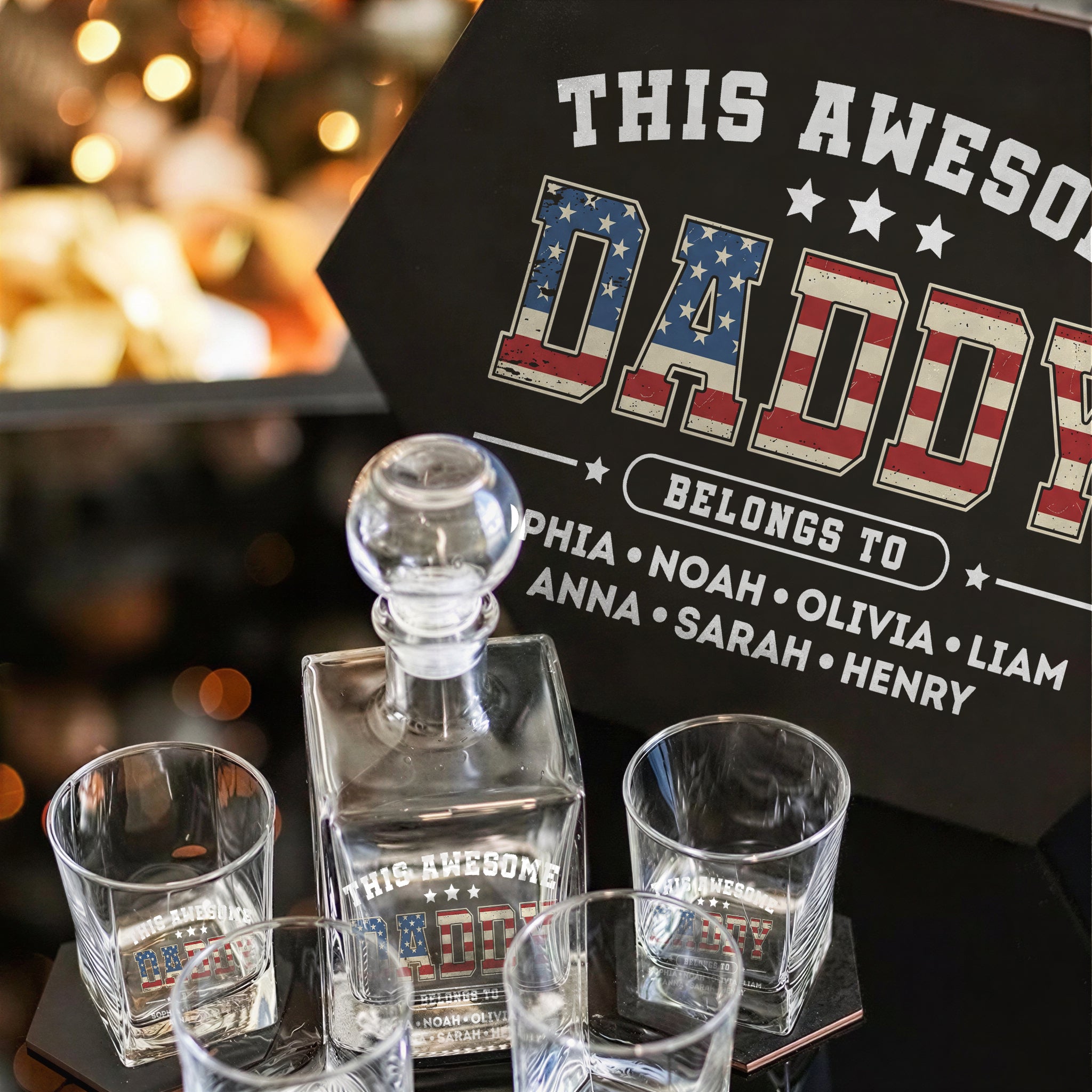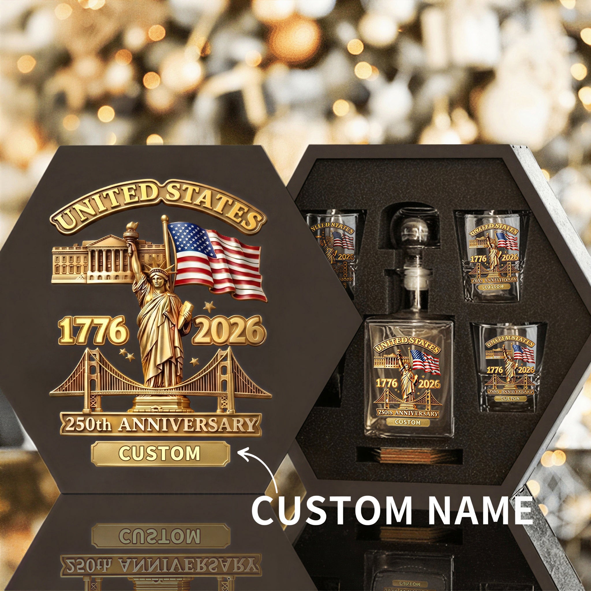 CUSTOM NAME - WHISKEY SET (Wooden box + Decanter + 4 Glasses + 4 Coasters), BOURBON WHISKEY, FATHER'S DAY GIFT, FOR WHISKEY LOVERS