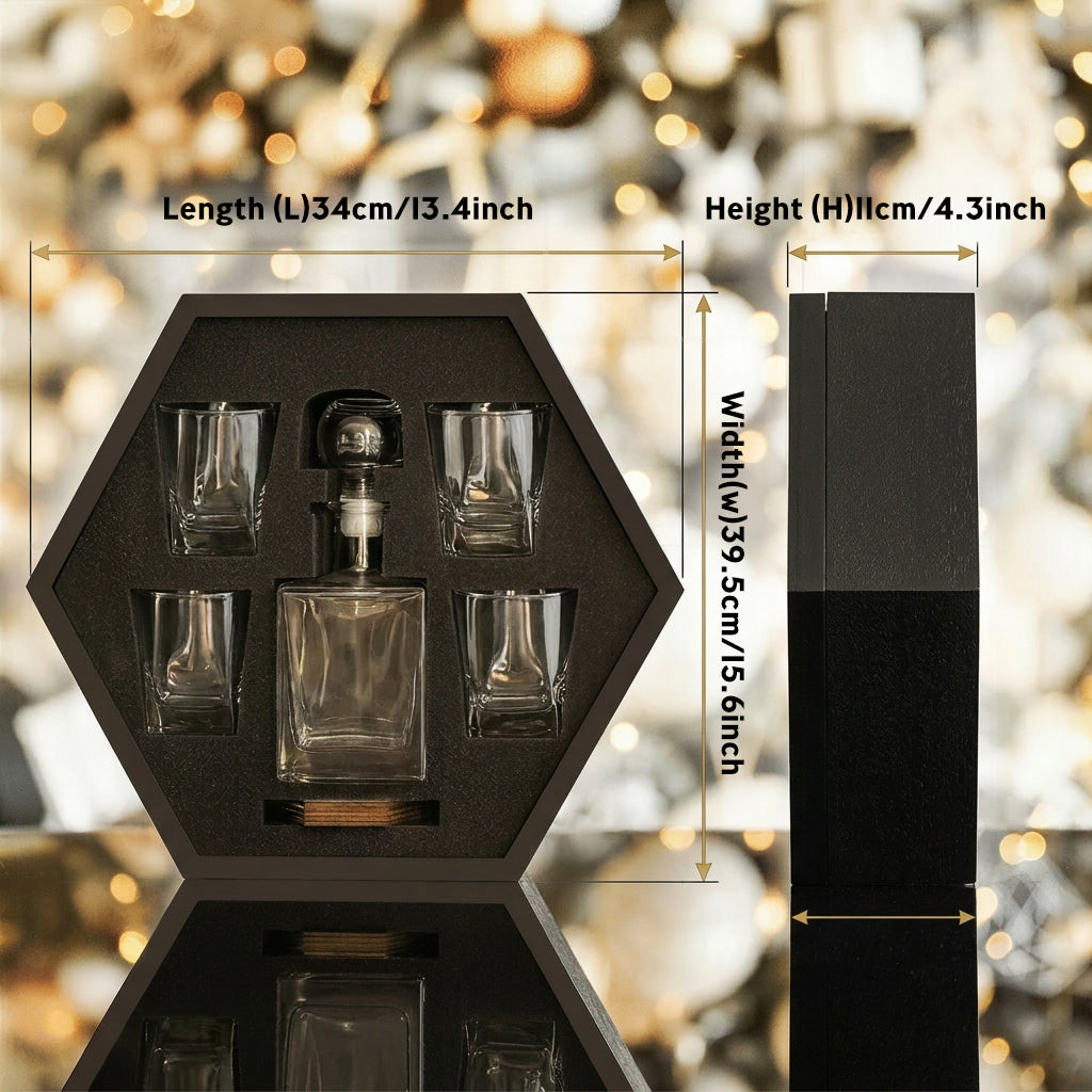 CUSTOM NAME - WHISKEY SET (Wooden box + Decanter + 4 Glasses + 4 Coasters), BOURBON WHISKEY, FATHER'S DAY GIFT, FOR WHISKEY LOVERS