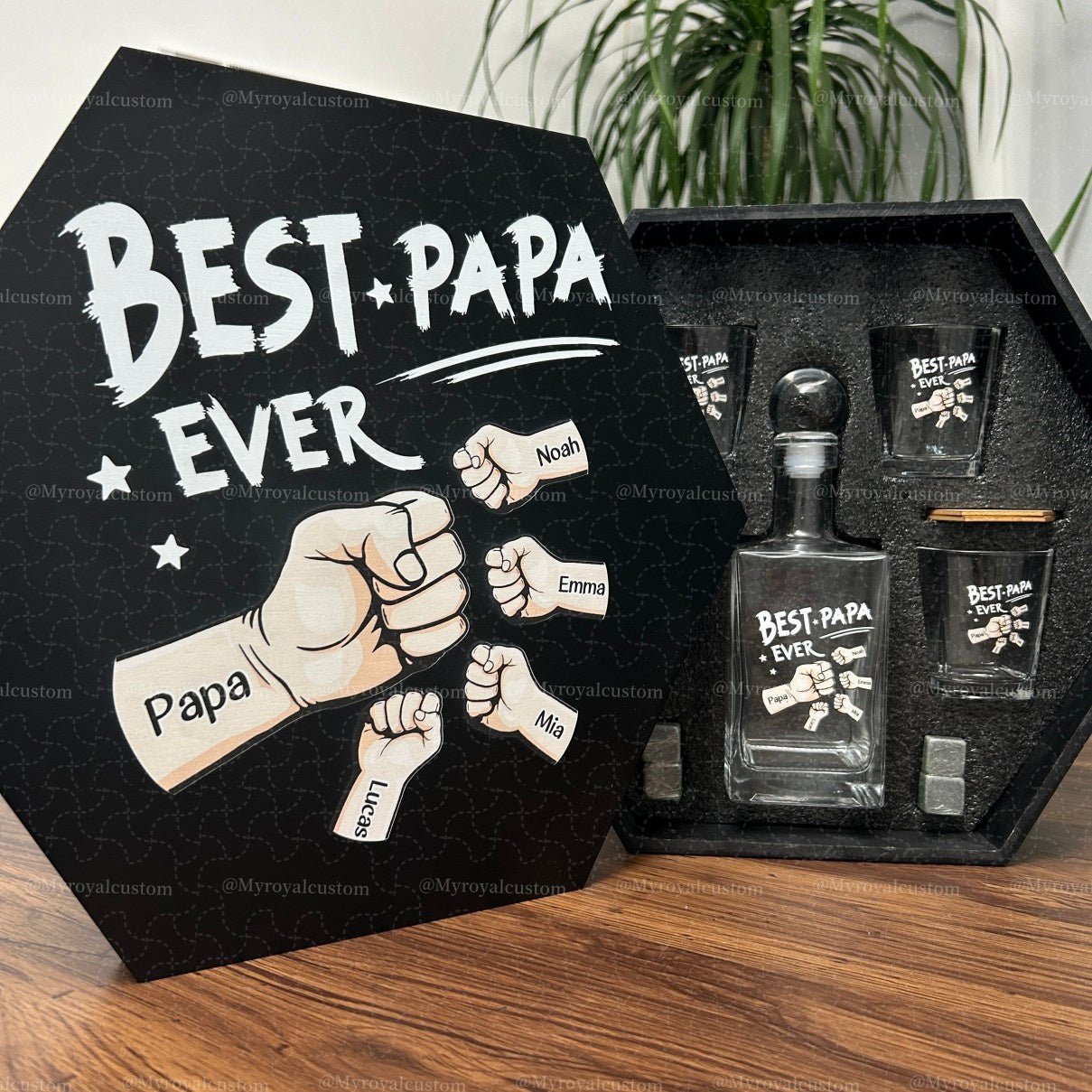 Whiskey Decanter Set is a wonderful gift, completely personalized to your wishes for your loved ones. The personalization of each element will remain in the memory as an exclusive gift, which is approached with special attention, and the recipient receives an unforgettable emotion. This Personalized Whiskey Gift Set is a one-of-a-kind gift, perfect and suitable for any occasion. Whiskey Decanter Set is a unique and thoughtful gift for a loved one, brother, dad, colleague, boss, boyfriend, or groomsmen. Perfect for Wedding Day, Birthday, Father's Day, Corporate Gift, Christmas, as well as for no reason