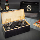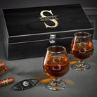 Personalized Elegance: Each set includes a black gift box and two cognac glasses, all engraved with your selected design, reflecting a customized touch of class.