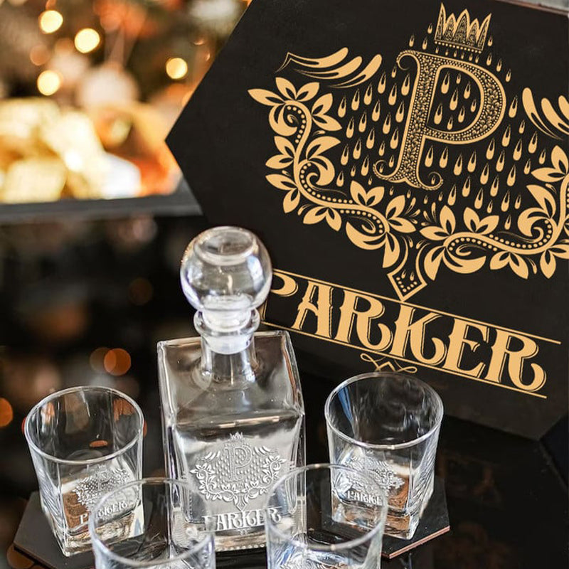 Whiskey Decanter Set is a Wonderful Gift Completely Personalized to Your Wishes to Your Loved Ones. The personalization of each element will remain in the memory as an exclusive gift, which is approached with special attention and the recipient receives an unforgettable emotion. This Personalized Whiskey Gift Set is a one of a kind gift, perfect and suitable for any occasion. Whiskey Decanter Set is a unique and thoughtful gift for loved one, brother, dad, colleague, boss, boyfriend or groomsmen. Perfect for Wedding Day, Birthday, Father Day, Corporate Gift, Christmas as well as for no reason