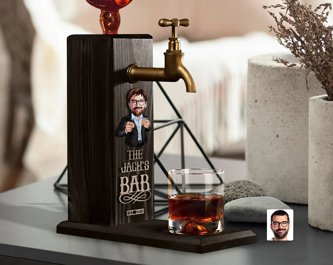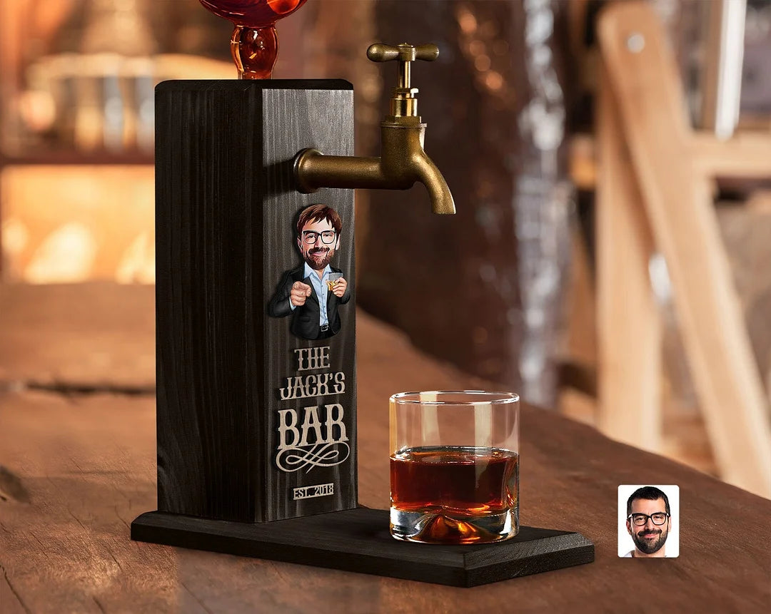 Personalized Embossed Name Wooden Dispenser with Cartoon - Ideal for Bars, Home Bars, Pubs, and Sheds; Perfect for Serving Wine and Vodka.