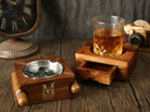 Personalized Whiskey & Cigar Tray Glass Holder Ashtray Whiskey, 2 in 1 Wooden Cigar Ashtray With Whiskey Glass Holder, Great Gifts for Men