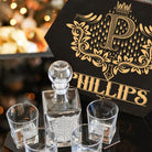 PHILLIPS - WHISKEY SET (Wooden box + Decanter + 4 Glasses + 4 Coasters)