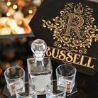 RUSSELL - WHISKEY SET (Wooden box + Decanter + 4 Glasses + 4 Coasters)