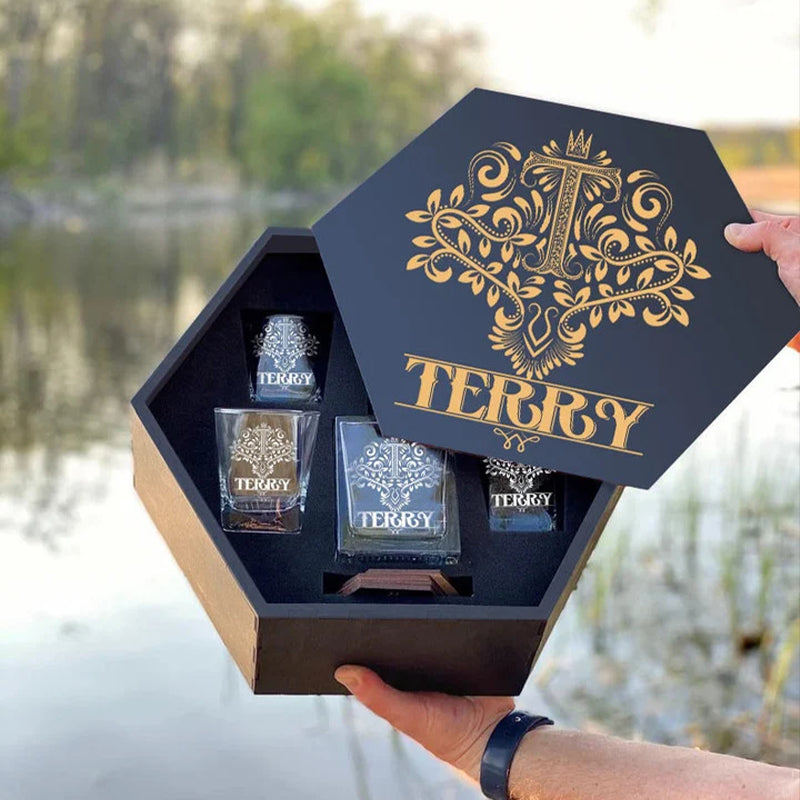 Whiskey Decanter Set is a Wonderful Gift Completely Personalized to Your Wishes to Your Loved Ones. The personalization of each element will remain in the memory as an exclusive gift, which is approached with special attention and the recipient receives an unforgettable emotion. This Personalized Whiskey Gift Set is a one of a kind gift, perfect and suitable for any occasion. Whiskey Decanter Set is a unique and thoughtful gift for loved one, brother, dad, colleague, boss, boyfriend or groomsmen. Perfect for Wedding Day, Birthday, Father Day, Corporate Gift, Christmas as well as for no reason