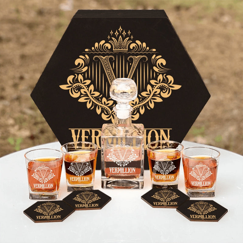 Whiskey Decanter Set is a Wonderful Gift Completely Personalized to Your Wishes to Your Loved Ones. The personalization of each element will remain in the memory as an exclusive gift, which is approached with special attention and the recipient receives an unforgettable emotion. This Personalized Whiskey Gift Set is a one of a kind gift, perfect and suitable for any occasion. Whiskey Decanter Set is a unique and thoughtful gift for loved one, brother, dad, colleague, boss, boyfriend or groomsmen. Perfect for Wedding Day, Birthday, Father Day, Corporate Gift, Christmas as well as for no reason