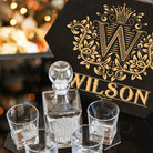 WILSON - WHISKEY SET (Wooden box + Decanter + 4 Glasses + 4 Coasters)